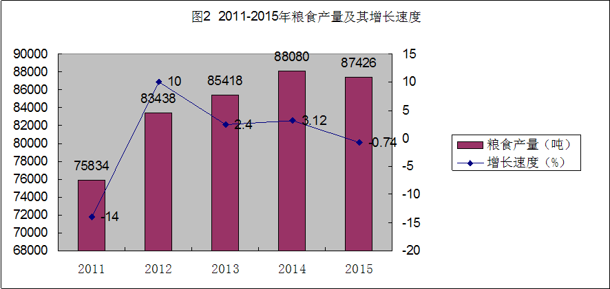 全年粮食产量87426吨,比上年减少654吨,下降0.74%;豆类产量14550吨,减少2273吨,同比下降13.51%;洋芋产量30868吨,减少575吨,同比下降1.83%。