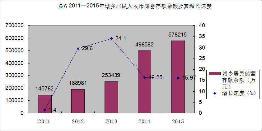 2015年年末,全县金融机构各项存款额578215万元,比上年增长15.97%。其中单位存款142980万元,同比下降7.18%,个人存款360500万元,同比增长23.42%。全县金融机构各项贷款余额269049万元,同比下降3.14%。