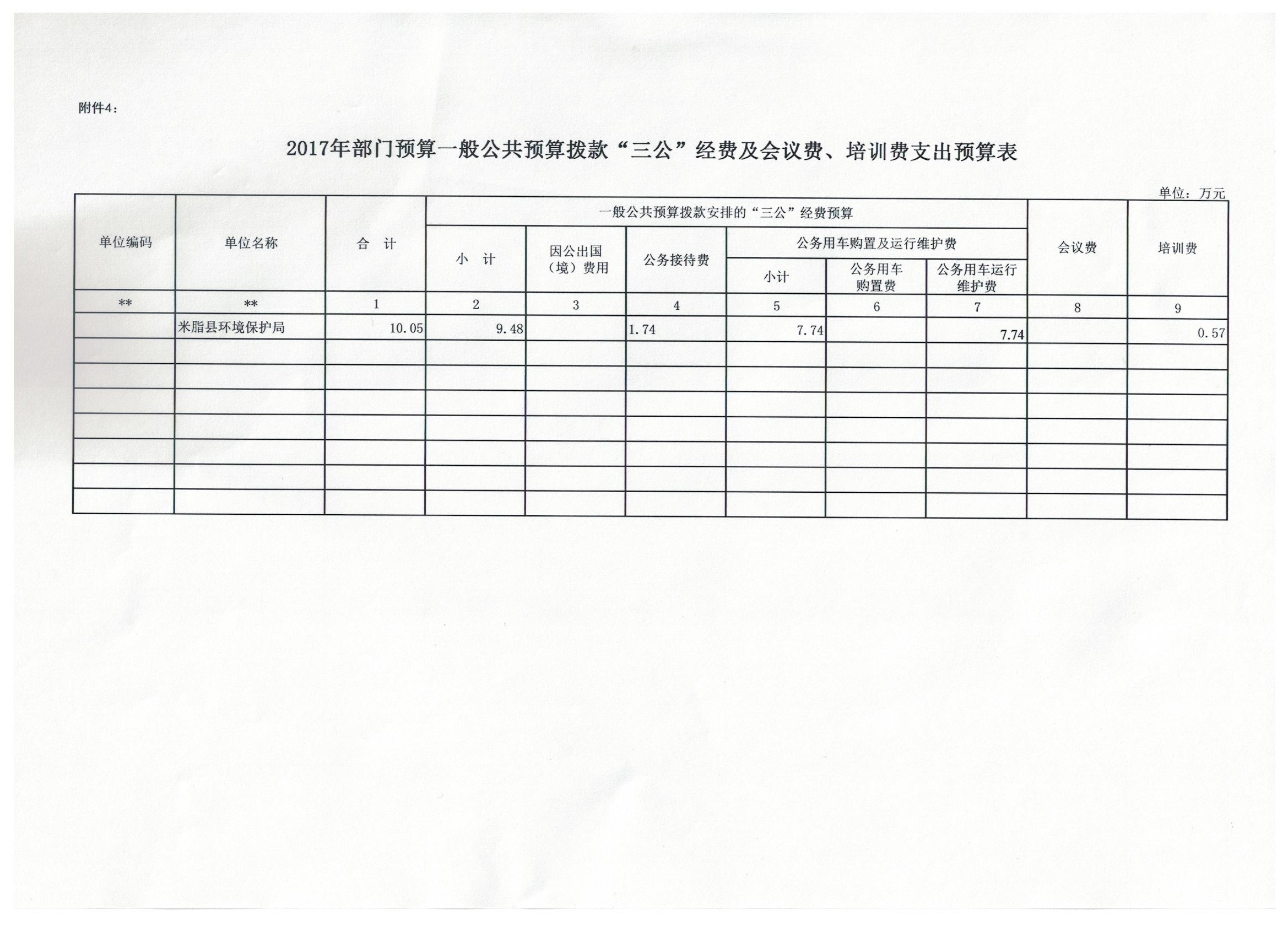 2017年部门预算一般公共预算拨款“三公”经费及会议费、培训费支出预算表