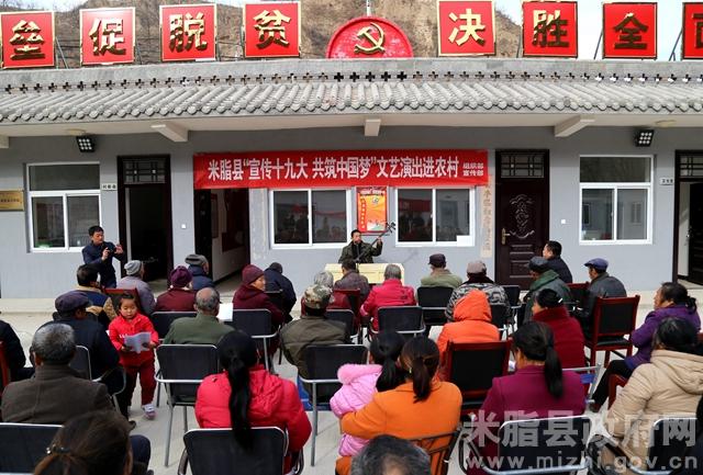 12月11日,由米脂县委组织部、宣传部联合举办的“宣传十九大 共筑中国梦”陕北说书走进杨家沟镇岳家岔村,为当地老百姓带来了一场精彩的文化盛宴。陕北说书艺人杨红红声情并茂的说唱,讴歌在党的十九大精神指引下,全县人民脱贫致富的典型事迹和积极向上的精神风貌,对全面建成小康社会幸福生活的美好憧憬,让党的十九大在基层落地生根。精彩的说书赢得了现场群众的热烈掌声,通过这种群众喜闻乐见的宣传形式,进一步推动了十九大精神家喻户晓、入心入脑,对全县学习贯彻党的十九大精神,助力脱贫攻坚营造了良好的宣传氛围。